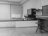 Jedna z delších stran sálu je vybavena zrcadly.
